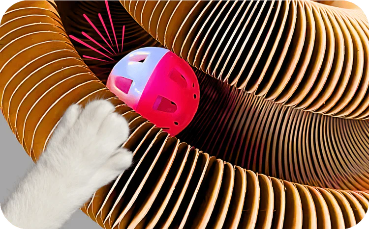 Un seul accessoire qui griffe, joue et occupe votre chat en même temps. La balle intégrée stimule son instinct de chasse pendant qu'il use ses griffes naturellement. Chaque session est saine, naturelle et sans effort de votre part.
